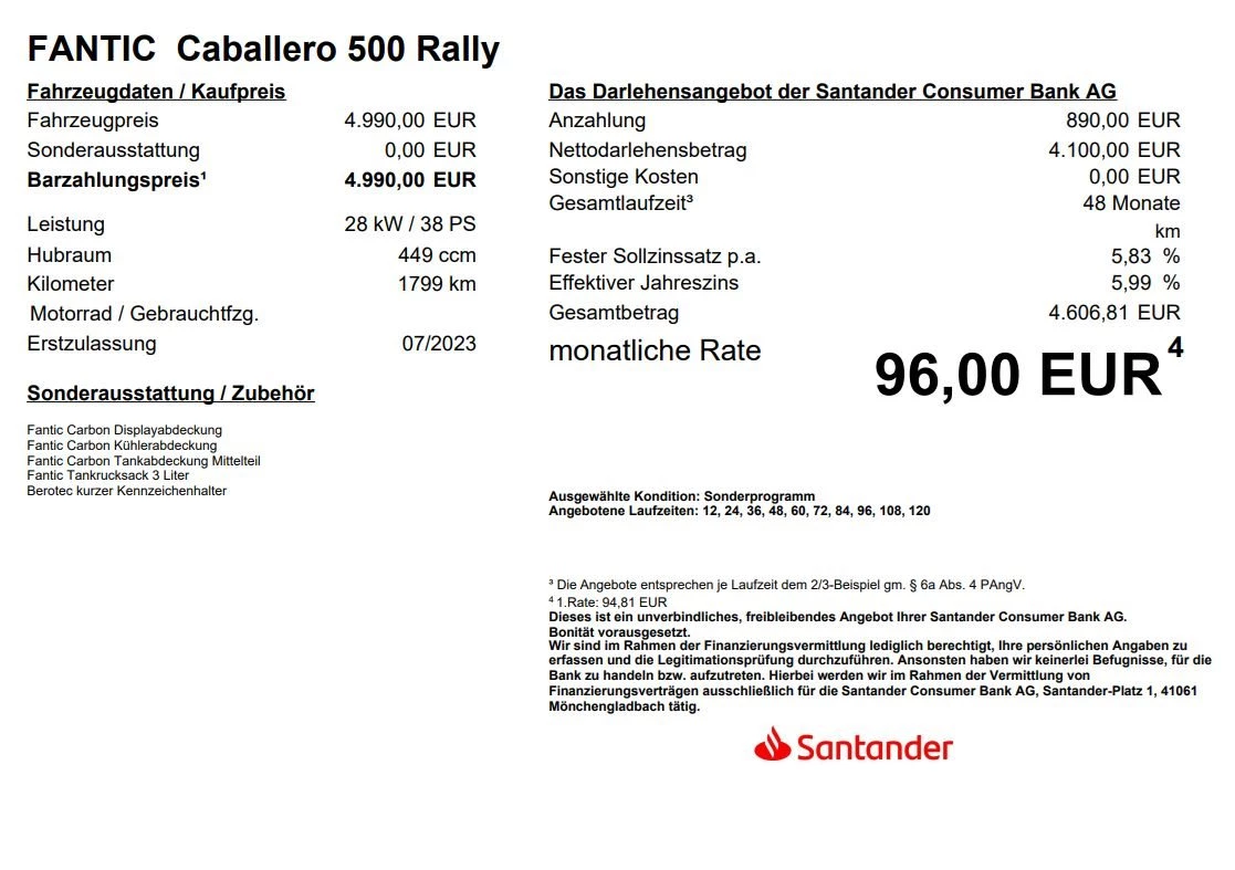 Hier bieten wir Ihnen eine wunderschöne Fantic Caballero 500 Rally im neuwertigen Zustand aus 2.Hand inkl. frischer Inspektion und einem Finanzierungsangebot in Zusammenarbeit mit der Santander Consumer Bank AG an.