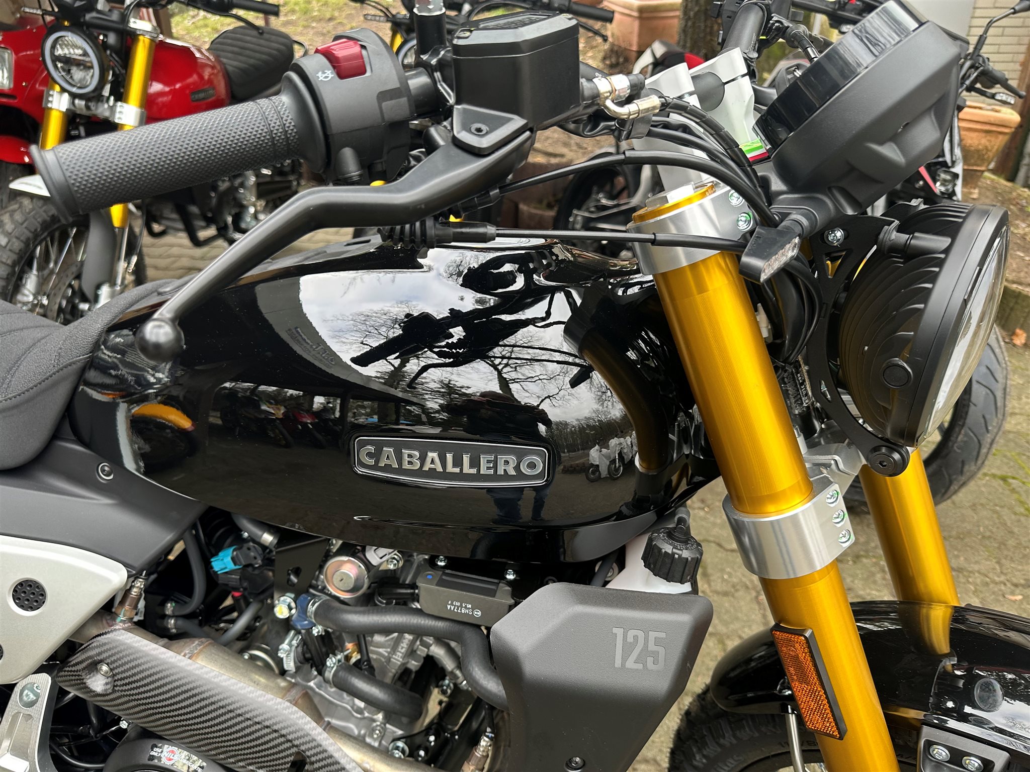 Die Ausstattung ist mit dem neuem Display mit Ganganzeige , den gefräßten Rahmenplatten - gefräßter Gabelbrücke unten und oben eine Augenweide. Durch eine moderne und wunderschöne Auspuffanlage sowie ein ABS - System von Continental wurde die Caballero nach Euro 5+ Norm homologiert.